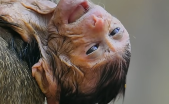 In the quiet stillness of the early morning, deep within the lush green forest, a tiny miracle unfolds. A newborn baby monkey, fragile and full of wonder, begins its journey …